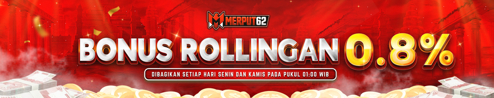 1. Bonus Rollingan 0,8% ini berlaku untuk permainan Slot dan Live Casino dari total TO(Turnover/Perputaran dana).